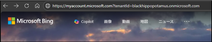 ゲスト参加テナントの「マイ アカウント」には以下のように ?tenantId= に続けてサインインするテナントのドメイン名を入れるとアクセスできます。