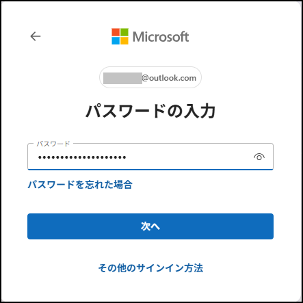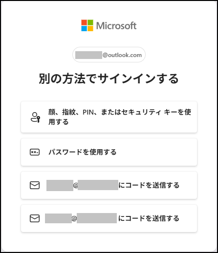 今度はエラーにならずサインイン方法の確認が表示されます。
