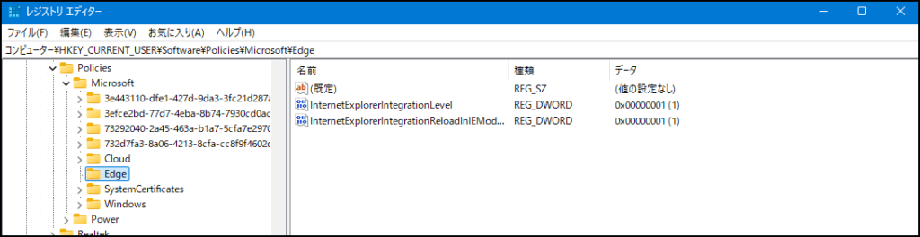 - キー: HKCU\Software\Policies\Microsoft\Edge